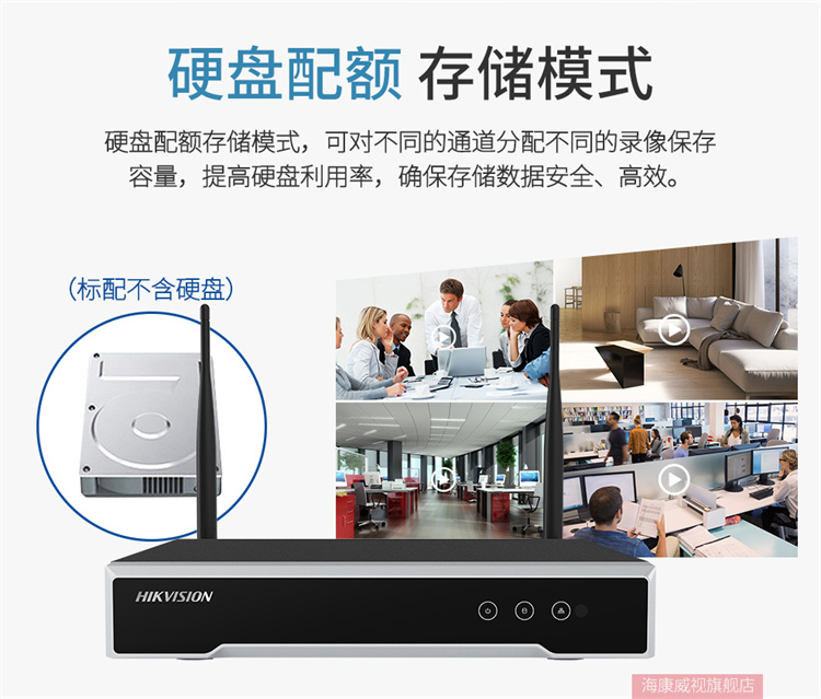 ??低?DS-7804N-F1/W(4路/1盤位) 海康威視無線WIFI網絡硬盤錄像機NVR監(jiān)控主機連接??禑o線監(jiān)控攝像頭