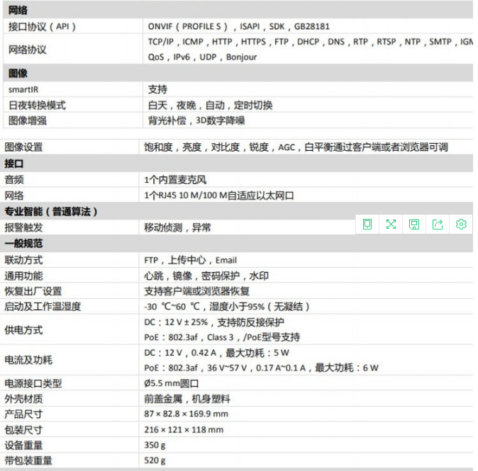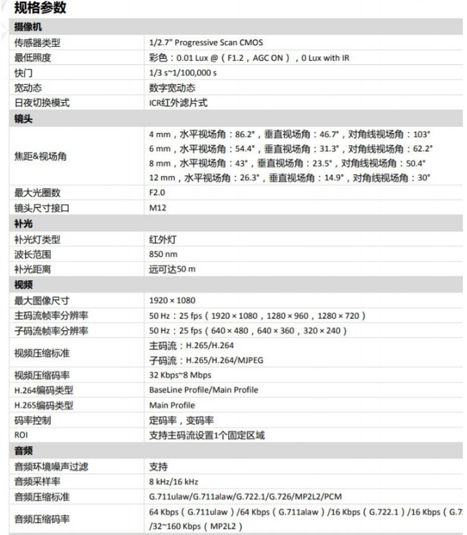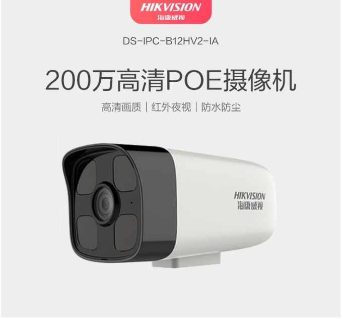 海康威視(HIKVISION)DS-IPC-B12HV2-IA 監(jiān)控攝像機 POE供電/ 4MM焦距