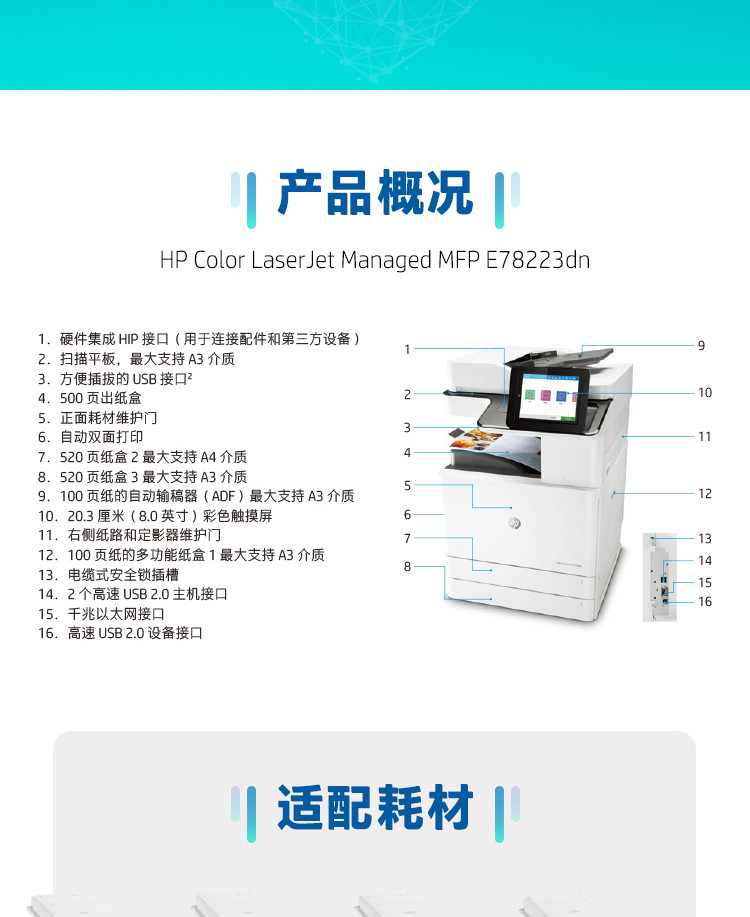 惠普 hp 78223dn 彩色激光復(fù)印打印掃描多功能一體機(jī)A3幅面