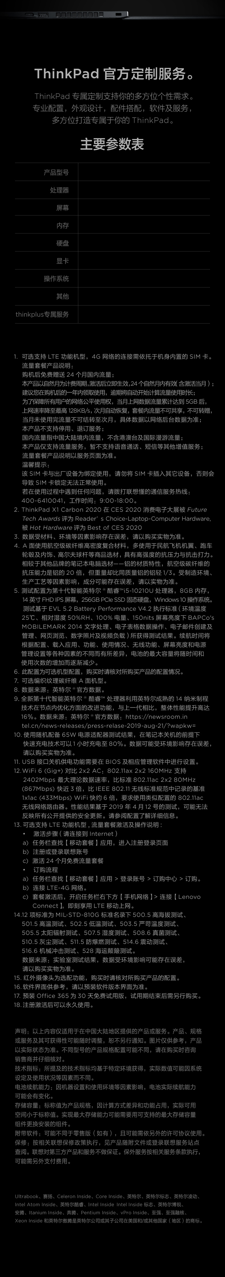 聯(lián)想ThinkPad X1 Carbon 2020 7HCD 英特爾酷睿i7 14英寸輕薄筆記本電腦 十代i7 16G 512G WQHD 4G版 沉浸黑