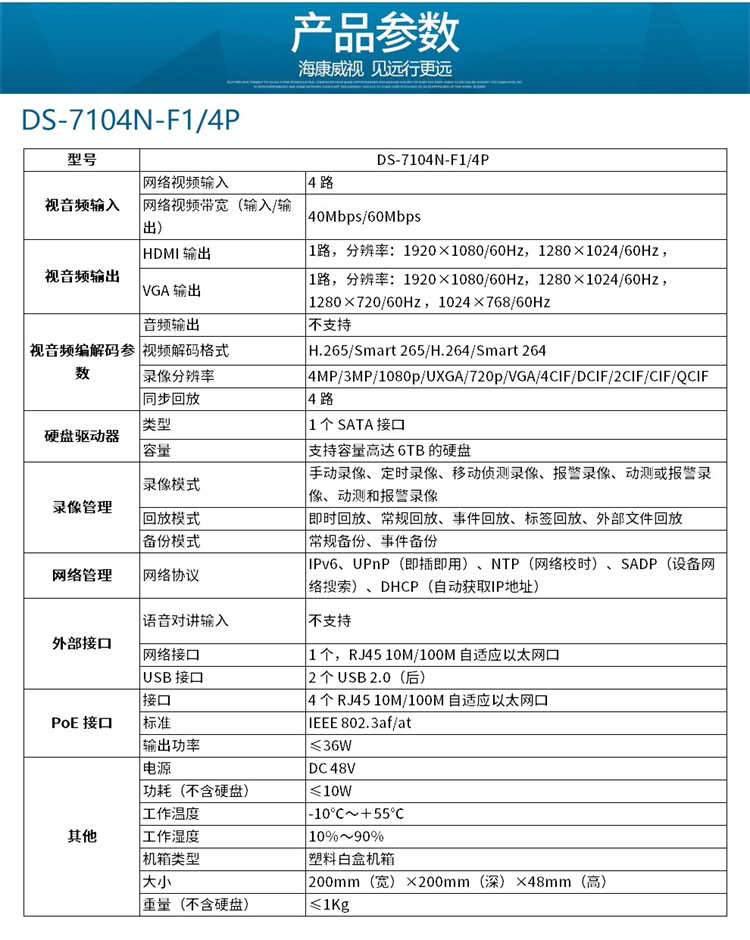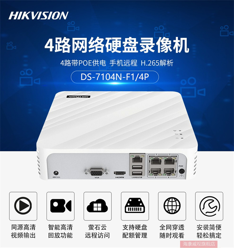 ??低?DS-7104N-F1/4P 海康威視網絡監(jiān)控硬盤錄像機4路POE網口 不帶硬盤