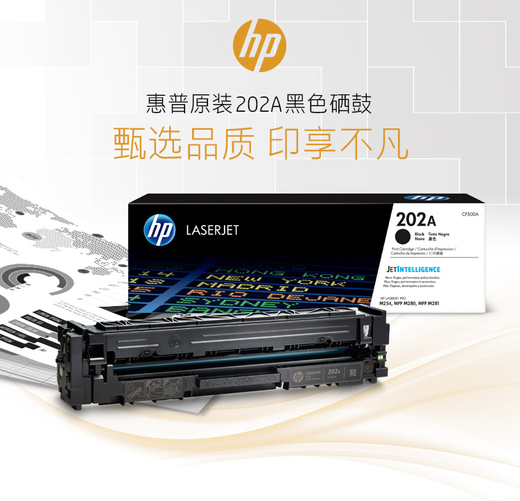 惠普(HP)CF500A 202A原裝黑色硒鼓 適用hp m281fdw 254dw 254NW 280NW 281FDN 打印機(jī)硒鼓