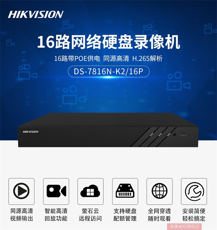 ??低?DS-7816N-K2/16P 海康威視網(wǎng)絡(luò)監(jiān)控硬盤錄像機(jī)16路帶POE 不帶硬盤