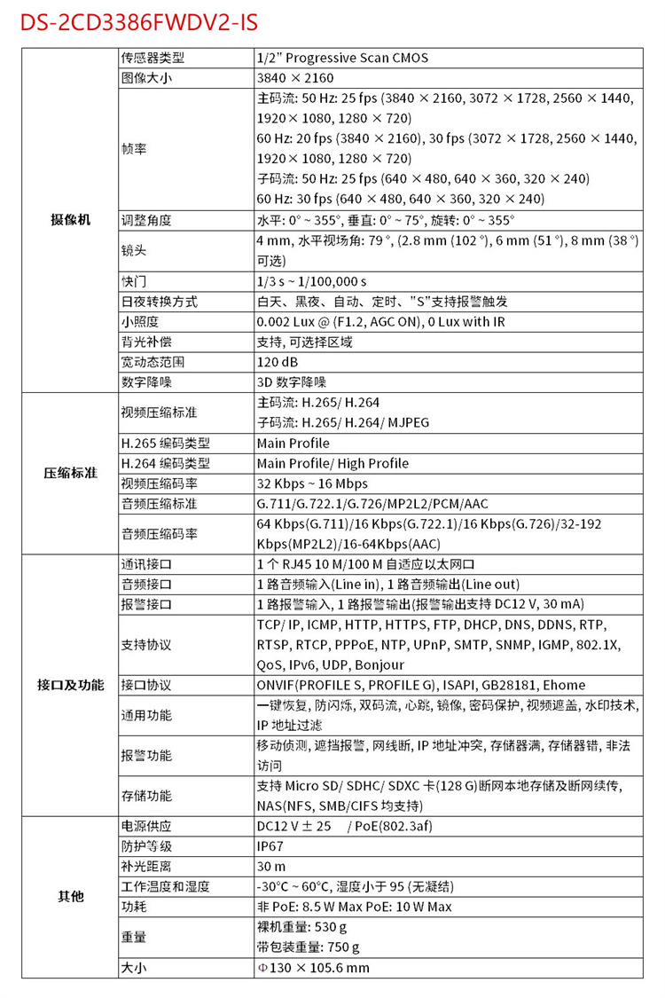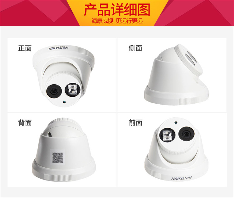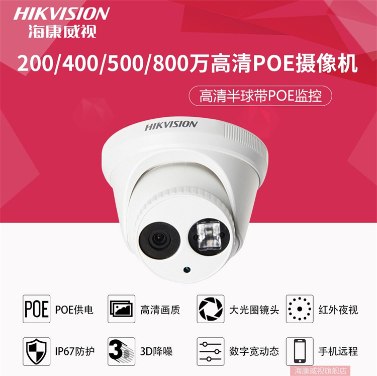 海康威視 DS-2CD3346WD-I (400萬)??低曅枪饧壌钆浔O(jiān)控設備套裝高清半球帶POE6MM焦距